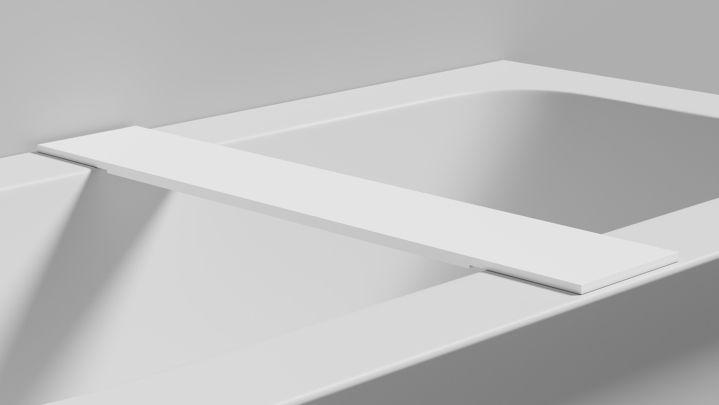 Полка для встраиваемых ванн GABBIANO IN PLUS — дополненная версия оригинальной полки GABBIANO IN, которая может быть выполнена на заказ в индивидуальных размерах.