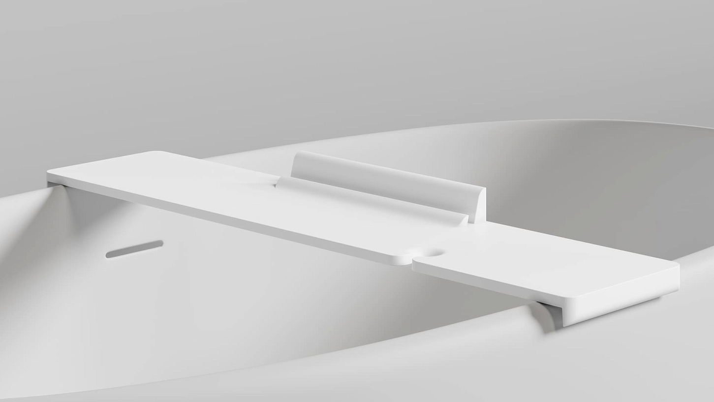 GABBIANO IN совместима со всеми моделями встраиваемых ванн, ширина которых составляет до 980 мм. Чтобы подобрать оптимальный размер полки GABBIANO IN под чашу вашей ванны, свяжитесь с менеджером Salini.