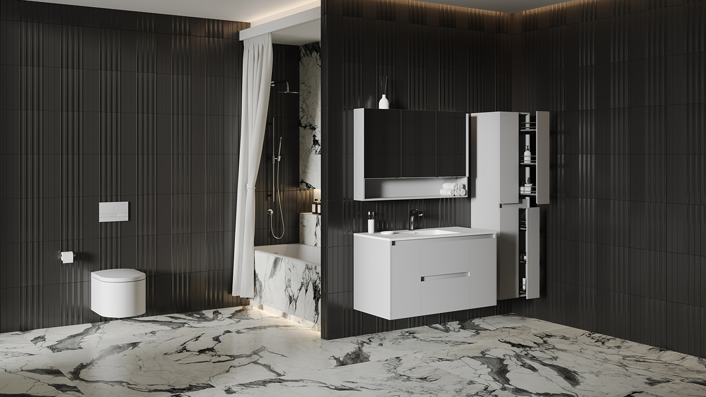• компактные туалетные шкафчики с широкими возможностями комплектации,
