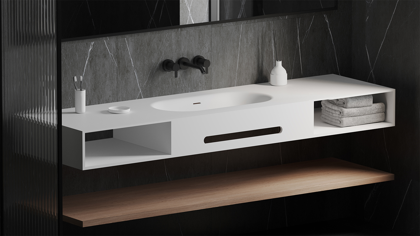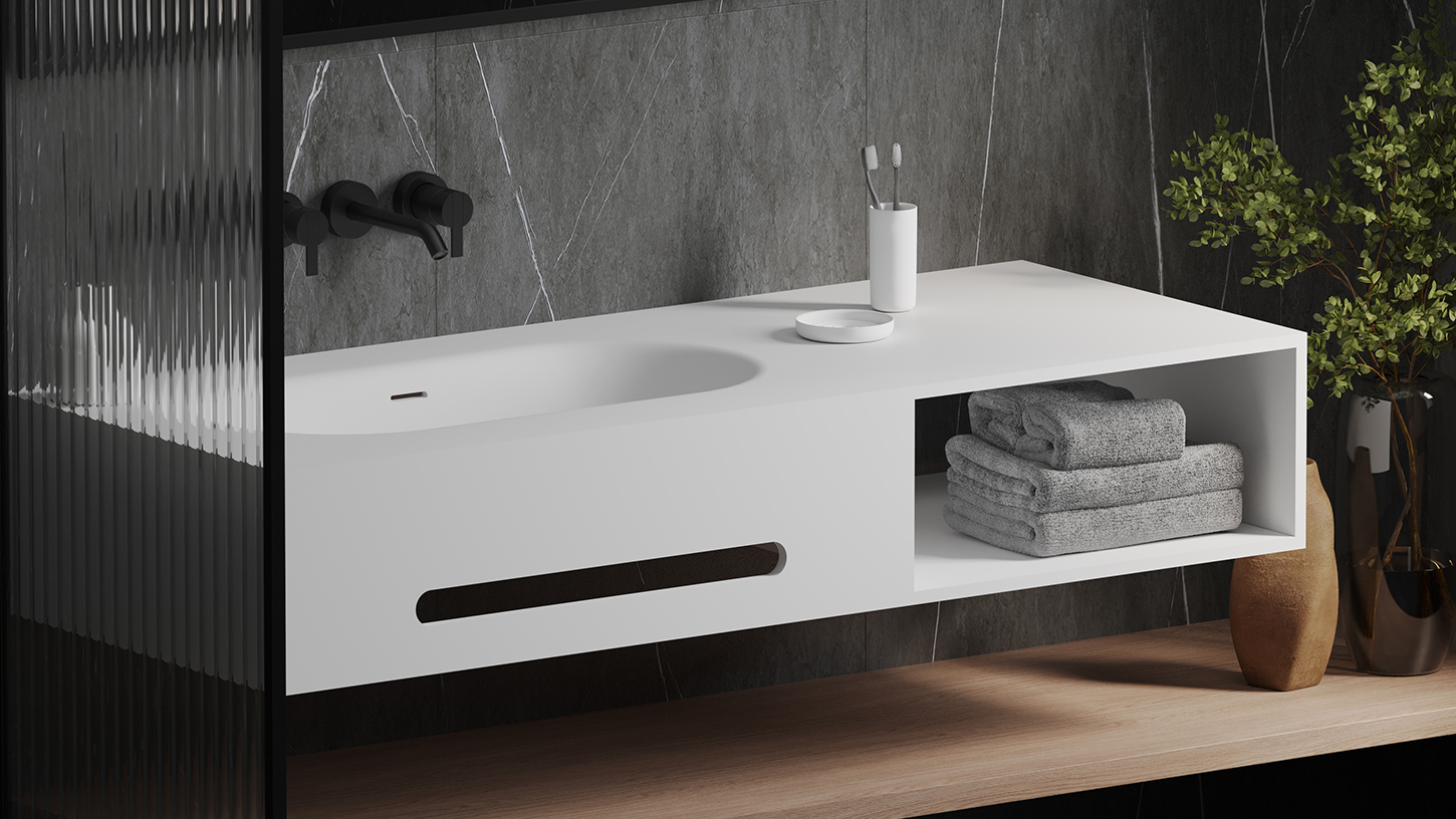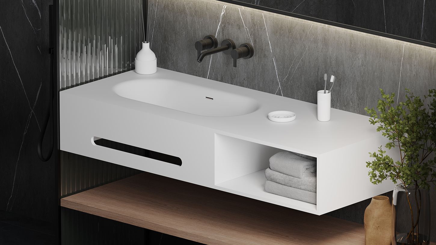 S-Stone — это современный композитный материал, в состав которого входят природные минералы на основе бокситов, связующие смолы и натуральные пигменты. Благодаря передовой технологии Solid Surface изделия S-Stone имеют полностью однородную структуру и не нуждаются в дополнительном покрытии.