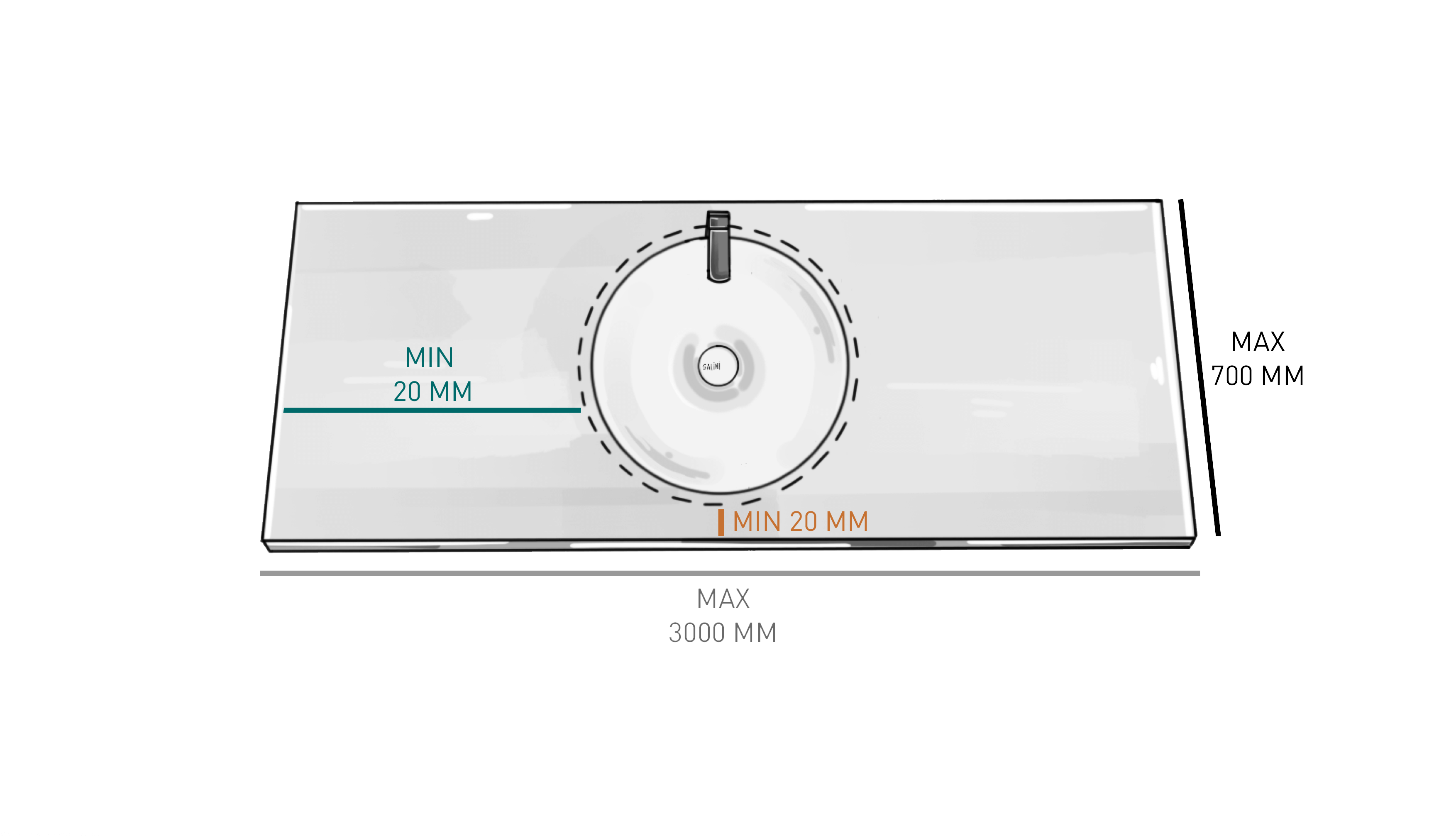 - наращивание длины столешницы до 3 000 мм (с возможностью размещения до 3-х чаш одновременно);