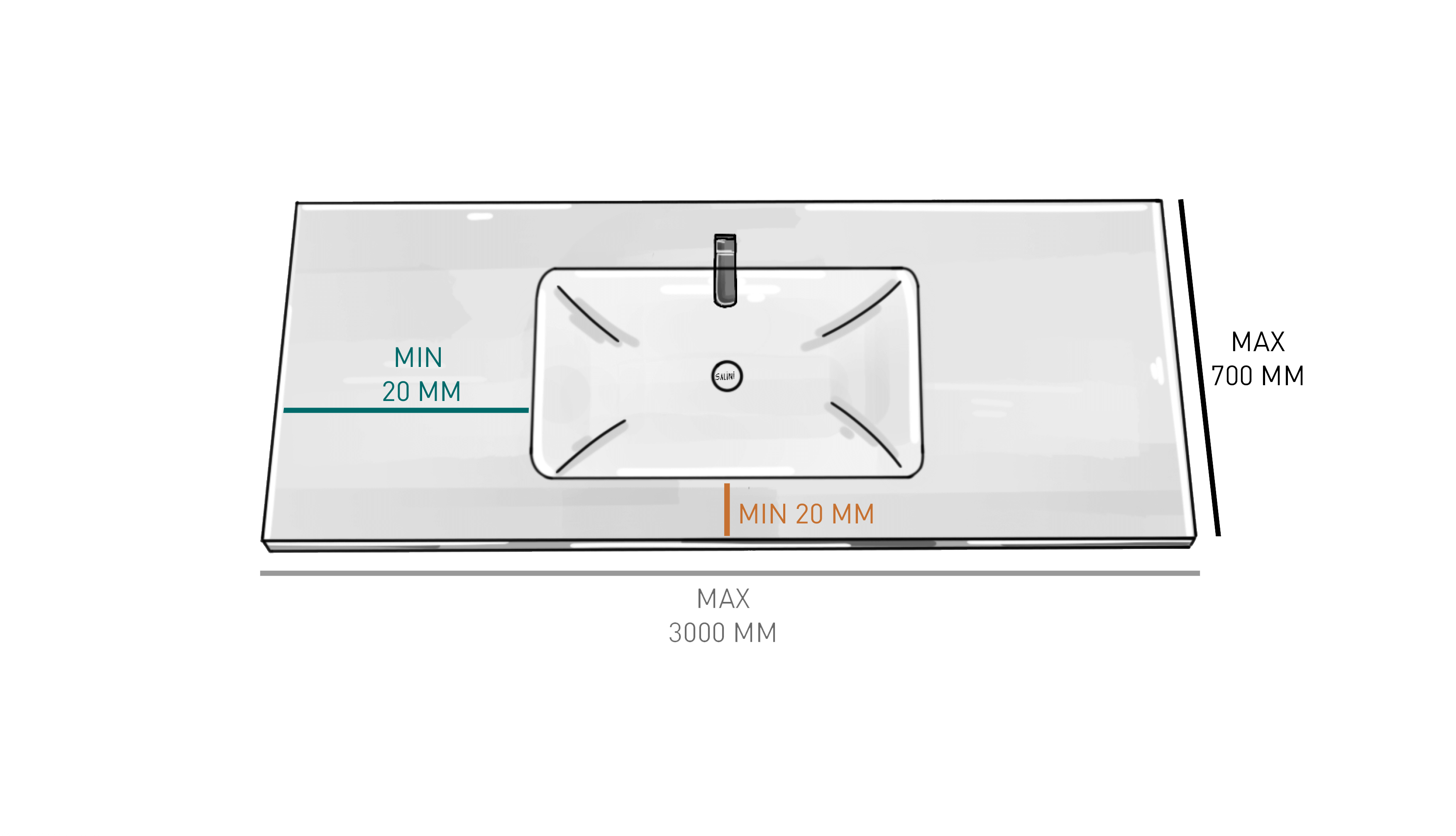 - наращивание длины столешницы до 3 000 мм (с возможностью размещения до 3-х чаш одновременно);