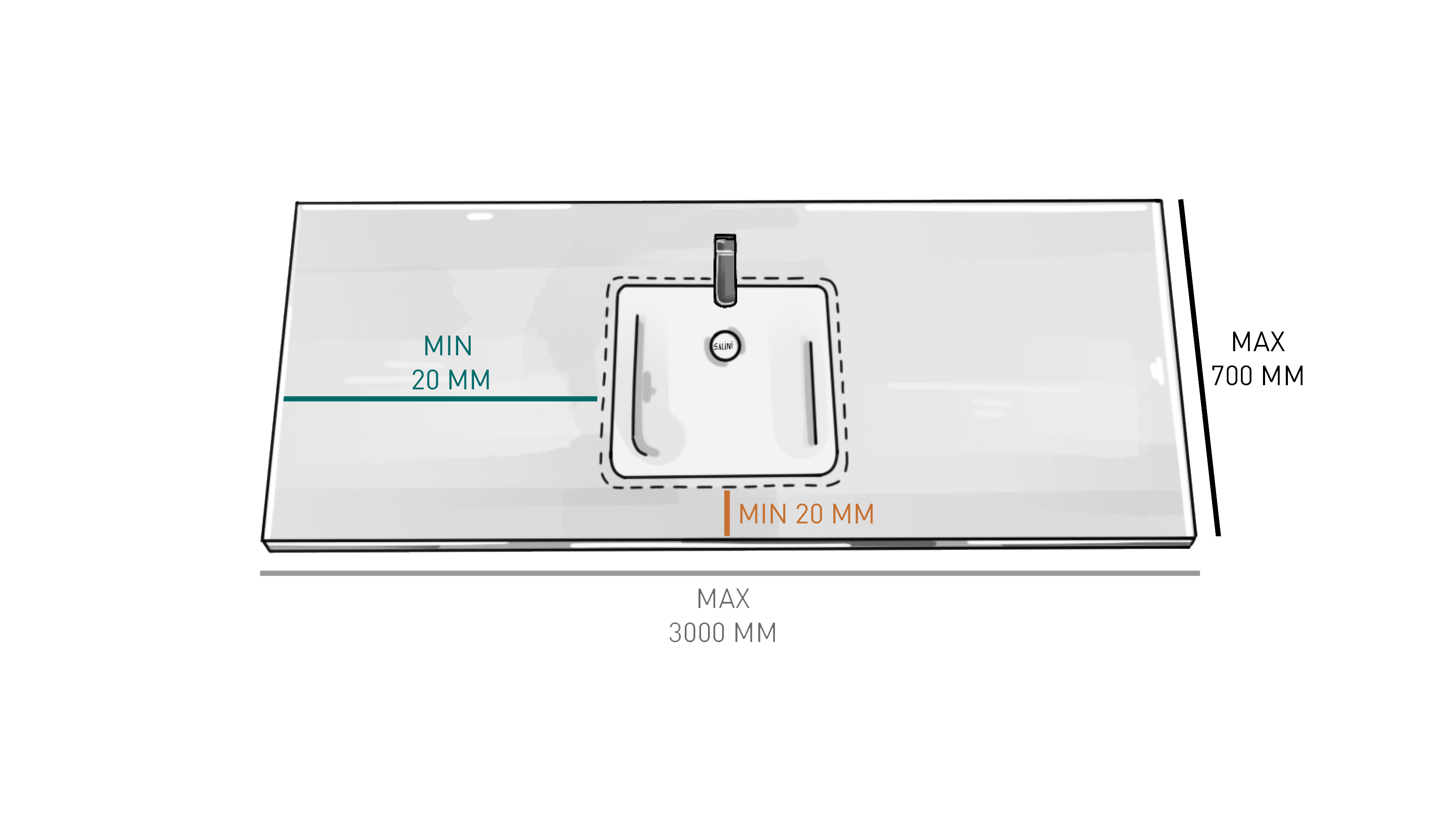 - наращивание длины столешницы до 3 000 мм (с возможностью размещения до 3-х чаш одновременно);