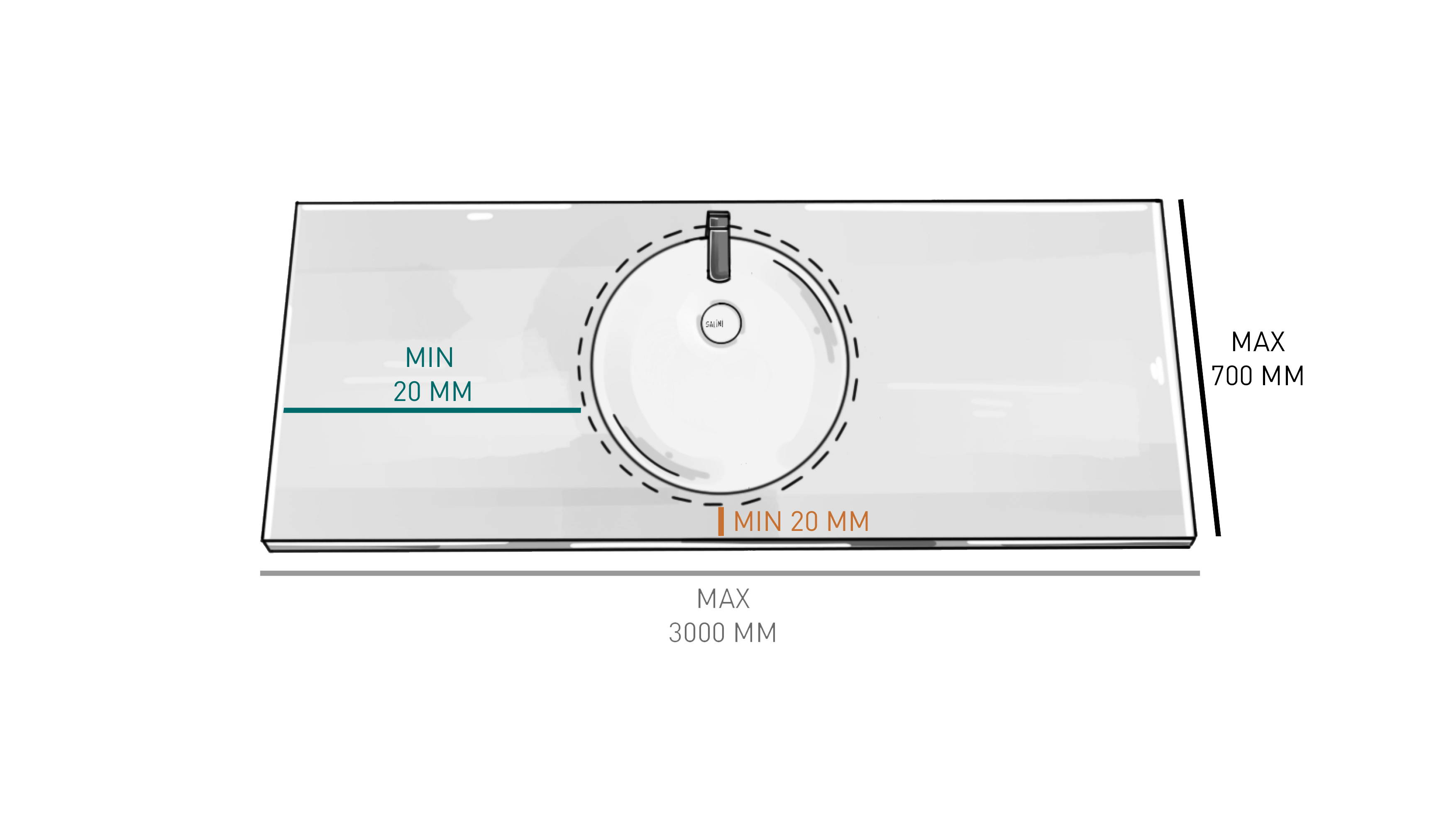- наращивание длины столешницы до 3 000 мм (с возможностью размещения до 3-х чаш одновременно);