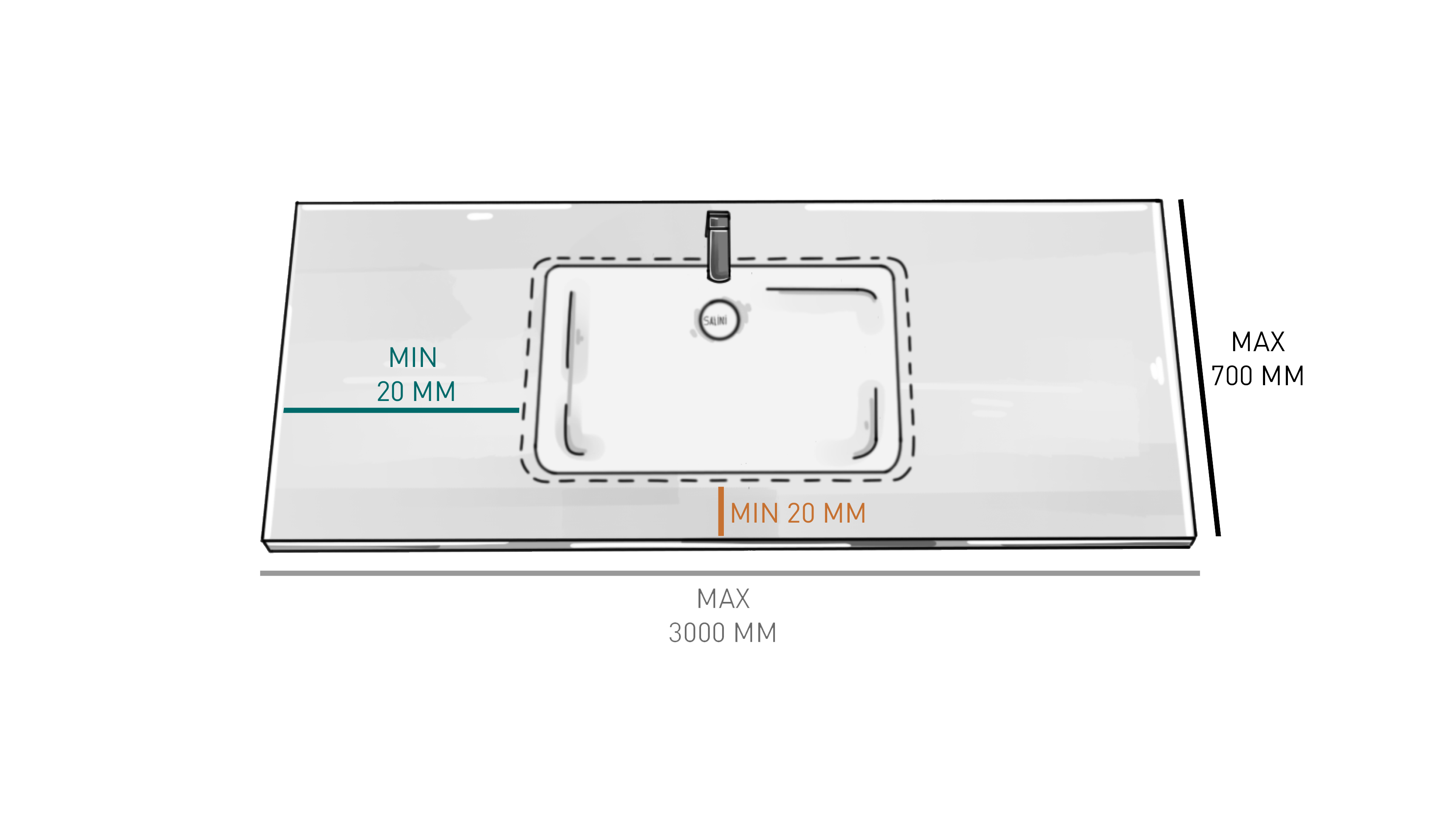 - наращивание длины столешницы до 3 000 мм (с возможностью размещения до 3-х чаш одновременно);